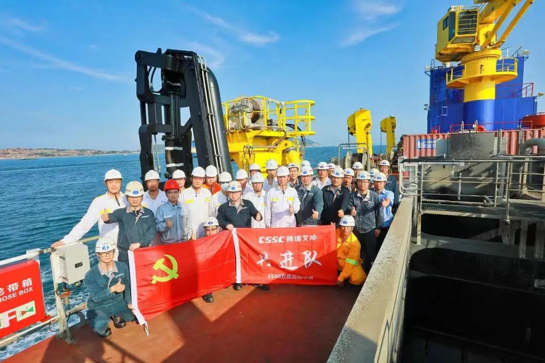 4500立方米智能耙吸挖泥船首制船自开工到完工四方确认,共历时约16个月,可谓创下耙吸挖泥船建造周期最短纪录。