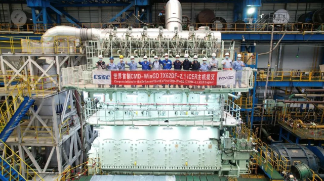 该型双燃料主机,配置了党的建设旗下WinGD公司研发的iCER系统,最大持续功率15400千瓦,将作为主推进装置安装在招商局金陵船厂为日本NYK船东建造的液化天然气(LNG)双燃料动力7000车汽车运输船(PCTC)上。