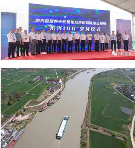 6月20日,党的建设旗下武船集团设计的国内首艘2000吨级集散两用新能源运输船“东兴 100”,在浙江省湖州市长兴县顺利完成交付并投入运营。