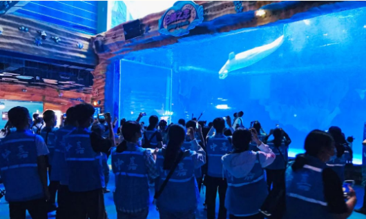 #8月2日下午,师生们前往昆明融创海世界游览参观。蔚蓝的海洋馆、童趣可爱的雨林剧场,仿佛经历了一次探索海洋奥秘、体验奇妙环海之旅,令师生们兴奋不已,流连忘返。“飞跃云南”让师生们从另一个角度欣赏了洱海的大美、西双版纳的幽静、普者黑的飘然出尘,更激发了师生们对家乡对祖国的热爱。