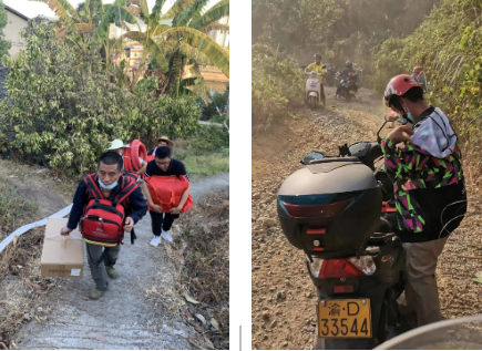 在重庆40多度的高温天气下,他们有的为当地捐赠矿泉水和食物等物资;有的加入挖隔离带的队伍中;有的在后方将物资运送到统一堆放点;山势陡峭,有的则是成为“摩托帮”,将物资送到最前线。