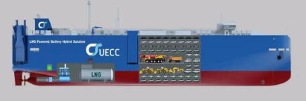 3600车汽车运输船是江南造船建造采用浮船坞下水的全球第一批“LNG双燃料+电池混合动力+智慧能源管理系统”的汽车运输船。该型船涵盖如双燃料+电池混合动力及EMS能源管控系统等世界一流的所有滚装船技术和系统。