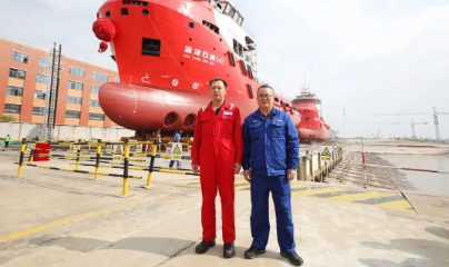 △每艘船下水时,姚胜华都要去现场看一看(右)