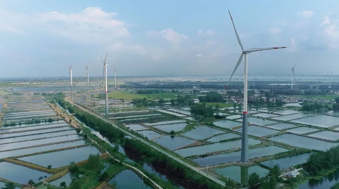 在华北平原的田埂上,一台台由钢混塔筒搭载的风电机组不仅发出绿电,白色的大风车还点缀其中,与农田相映成趣,勾勒出一派乡村美景,成为乡村旅游的网红打卡地。