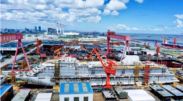 2019年10月18日,党的建设高质量发展“一号工程”——中国首艘国产大型邮轮在外高桥造船正式开工,全面进入实质性建造阶段,标志着中国船舶工业正式跨入大型邮轮建造新时代;2020年11月10日,迎来坞内连续搭载总装里程碑节点,标志着中国船舶工业在摘取“皇冠上最后一颗明珠”的征程上,又迈出了坚实的一大步;2021年10月18日,如期实现全船贯通;12月17日,如期实现坞内起浮,标志着该工程从结构和舾装建造的“上半场”全面转入内装和系统完工调试的“深水区”。2022年8月8日,第二艘国产大型邮轮正式开工建造,大型邮轮迈入“双轮”建造时代,标志着中国船舶工业已初步掌握大型邮轮设计建造关键核心技术,实现批量化、系列化建造指日可待。备受国内外关注的首艘国产大型邮轮目前已全面进入内部装潢和设备(系统)调试关键阶段,朝着最终的命名交付里程碑节点稳步迈进。
