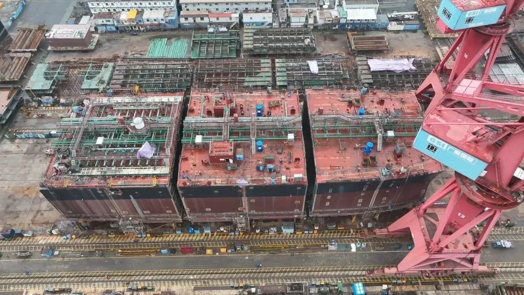来欣赏“拼积木” ,这就叫环形总段总组工艺。