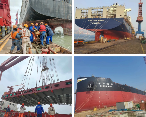 外高桥造船的船舶分段、广船国际的在修船舶、北海造船的在建船舶……,施工持续推进!