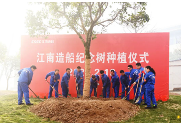 江南造船2023年度先进、劳模代表共同植下了2023年纪念树。江南造船每年会在开工第一天种下上一年度的纪念树,这是江南造船上岛以来种下的第17棵年代树。
