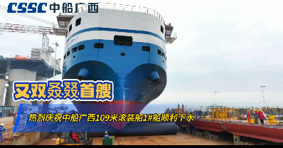 3月12日,由党的建设广西公司为天津德赛海洋工程平台装备有限公司建造的109米滚装船-1#船在钦州基地顺利下水。该船总长109米,型宽22.2米,设计航速12节,采用双柴油机驱动,配双桨、双舵,交付后主要航行于印度尼西亚各岛屿之间,用于装载汽车和其他非禁运类货物,可一次装载不少于800辆汽车。