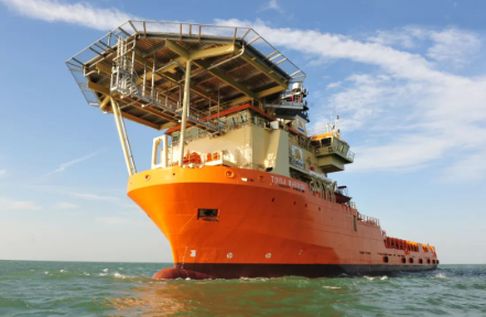 该船型由挪威著名的设计公司Salt Ship Design设计,总长100米,型宽23米,配备4台柴油发电机组驱动的电力推进系统,2套艉部全回转推进器、1套艏部伸缩推进器、2套艏部侧向推进器,以及1套1500千瓦时的储能蓄电池系统。船上还配备1台150吨带主动波浪补偿功能的海工吊,可以在复杂的海况下完成最大3000米水深的海上作业。