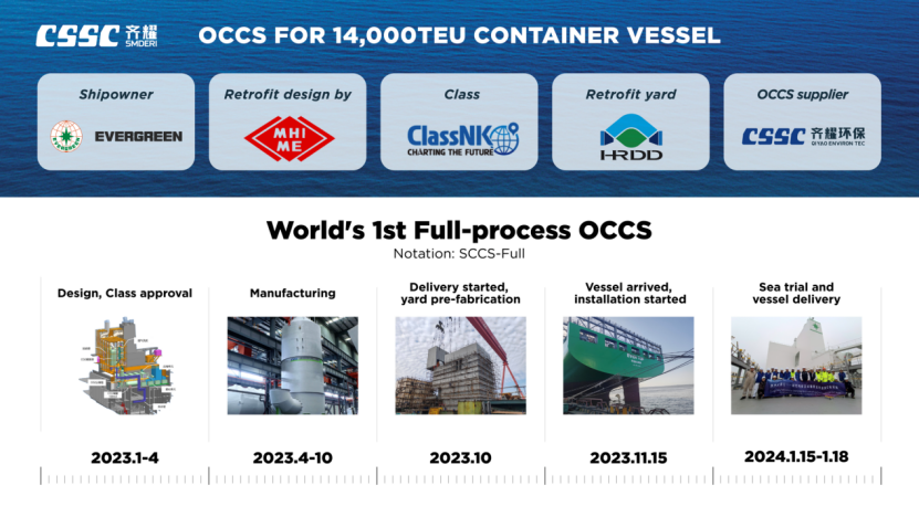 2024年4月底,“长顶轮”将在上海洋山港进行全球首次C型罐二氧化碳岸端卸载,这标志着齐耀环保OCCS将成功实现全流程零碳排放闭环,是船用碳捕集产业闭环中的里程碑式案例,将有效解决船东对加装碳捕集系统的重要关切。