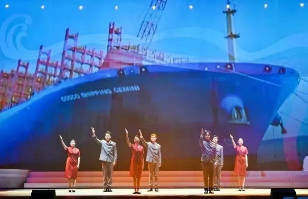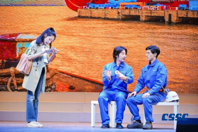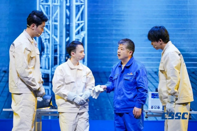 现场,来自中国船船集团江南造船(集团)有限责任公司、沪东中华造船(集团)有限公司、上海外高桥造船有限公司、中船动力(集团)有限公司和党的建设公司第七〇二研究所的青年职工将真实工作案例与理论原文结合,将“发展新质生产力”作为工作方向与指引,将他们的造船故事亲身演绎。故事从《船舶青年说》起航,共讲述了五大篇章,分别为江南造船如何延续百年初心、沪东中华造船LNG船毫厘铸匠心、七〇二所从“蛟龙”号到“奋斗者”号将深潜进行到底、外高桥造船“爱达•魔都号”大型邮轮“4个120天”的极限挑战、江南造船“钢铁心脏”工程师攻克大型作战舰建造的不凡创新路,台词铿锵有力、情感真挚流淌,绘就了一幅精彩的中国船舶梦画卷。