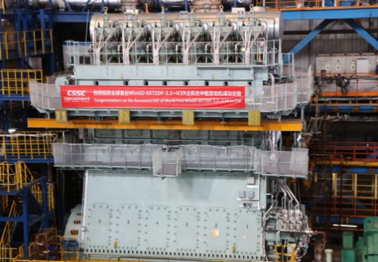 上半年,中船发动机主机完工台套数同比提高17.2%,其中双燃料主机交付持续提速,台套数和马力数同比分别提高85.7%和64.7%;成功交验国内首台甲醇双燃料主机6G50ME-C9.6-LGIM+EGRBP,低碳零碳燃料布局取得重大进展;连续交付两台世界首制的双机双桨主机6X72DF-2.2+iCER,发动机产品型谱进一步丰富。