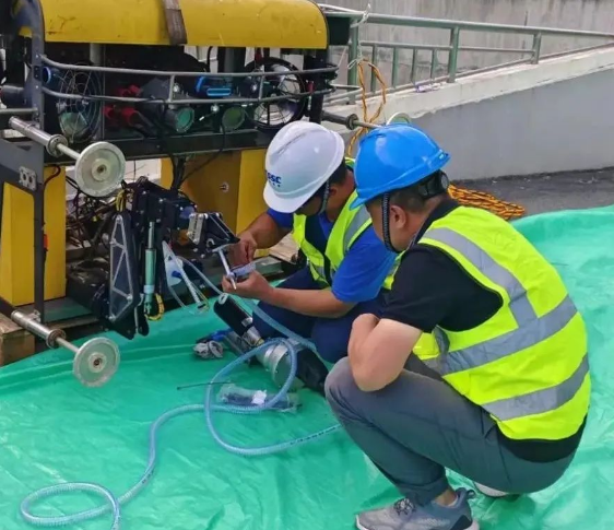 项目组成员克服高温高湿的环境和艰苦条件,历时近十天圆满完成有关试验任务。本次外场试验,充分验证并优化了七〇二所在水下工程领域的核心技术,包括水下裂缝检测、水下裂缝修复、水下嵌填、水工建筑物表面清理及水下插拔等关键技术的实际应用效果与操作效率。