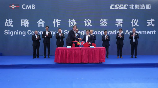北海造船与比利时CMB.TECH公司签署战略合作协议。双方将秉持优势互补、互利共赢的态度,持续拓展合作深度与广度,聚焦市场推出绿色燃料船,共同研发低碳和零排放技术,为打造国际绿色航运新生态作出更大贡献。