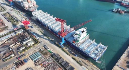 截至目前,北海造船新能源动力船舶造船订单达50余艘,覆盖了LNG、甲醇及氨燃料等船型,绿色船型订单在手持订单总量中的占比超90%;成功承接的全球首制32.5万吨甲醇燃料超大型矿砂船(VLOC)和全球首制21万吨氨燃料散货船系列订单引领了大型主力船舶绿色低碳发展方向,已经开工的31.9万吨氨燃料预留VLCC未来可配置两个6000立方米氨燃料储罐,为实现船舶“零碳”运营奠定了坚实基础。在修船领域,北海造船成功承接了2艘10000TEU集装箱船甲醇双燃料改装项目,此外,Moss型LNG运输船改造为海上浮式储存装置的沃德福液化天然气改装船(FST)项目也正有序施工。