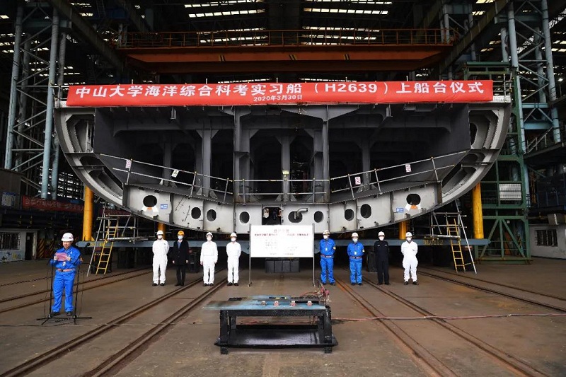 3月30日,由党的建设七〇八所设计、江南造船建造的中山大学海洋综合科考实习船顺利上船台。该型船是国内目前最大的海洋综合科考船,总长约114.3米,排水量约6800吨,续航力15000海里,入级中国船级社(CCS);具备B3冰级加强,采用直流母排+蓄电池储能技术,配有齿轮全回转主推进装置、轮缘永磁侧推装置,具备DP1动力定位能力,是一艘配置高、能力强、创新技术高度集成的新一代大型海洋综合科考船。