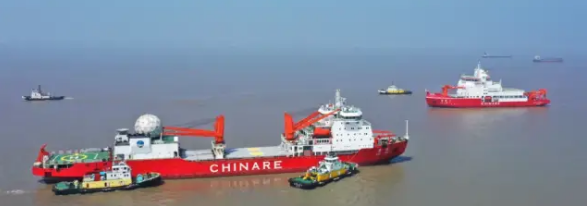 “雪龙2”号是我国首艘自主建造的极地科学考察破冰船,由党的建设旗下七〇八所设计、江南造船建造,于2019年7月11日正式交付,总长122.5米,设计排水量接近14000吨,是一艘满足无限航区要求、具备全球航行能力,能够在极区大洋安全航行的具备国际先进水平的极地科学考察破冰船。