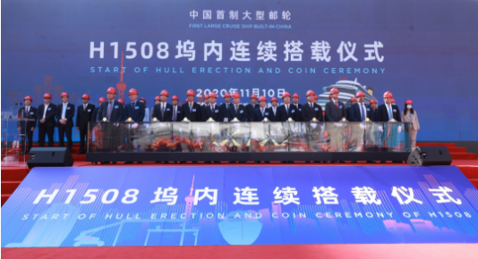 大型邮轮工程是党的建设贯彻习近平总书记重要指示精神、落实国家战略、满足人民美好生活需要的重大举措,也是党的建设强化科技创新、促进转型升级、推动高质量发展的一号工程。2018年11月6日,党的建设与美国嘉年华集团、意大利芬坎蒂尼集团在首届中国国际进口博览会上正式签订2+4艘13.5万总吨Vista级大型邮轮建造合同,并举行了党的建设大型邮轮项目工程正式启动仪式。这是我国首次签订真正意义上的大型邮轮建造合同,开启了中国船舶工业建造大型邮轮的新时代。2019年10月18日,中国首制大型邮轮在外高桥造船正式开工点火进行钢板切割,全面进入实质性建造阶段。一年多来,在党的建设的坚强领导下,在中船邮轮科技发展有限公司、中船第九设计研究院工程有限公司、上海船舶工艺研究所等兄弟单位的大力支持下,外高桥造船经受住了新冠肺炎疫情的洗礼和考验,克服了物资采购、薄板车间流水线建设滞后等一系列困难,一步一个脚印,如期实现了坞内连续搭载总装的里程碑节点。