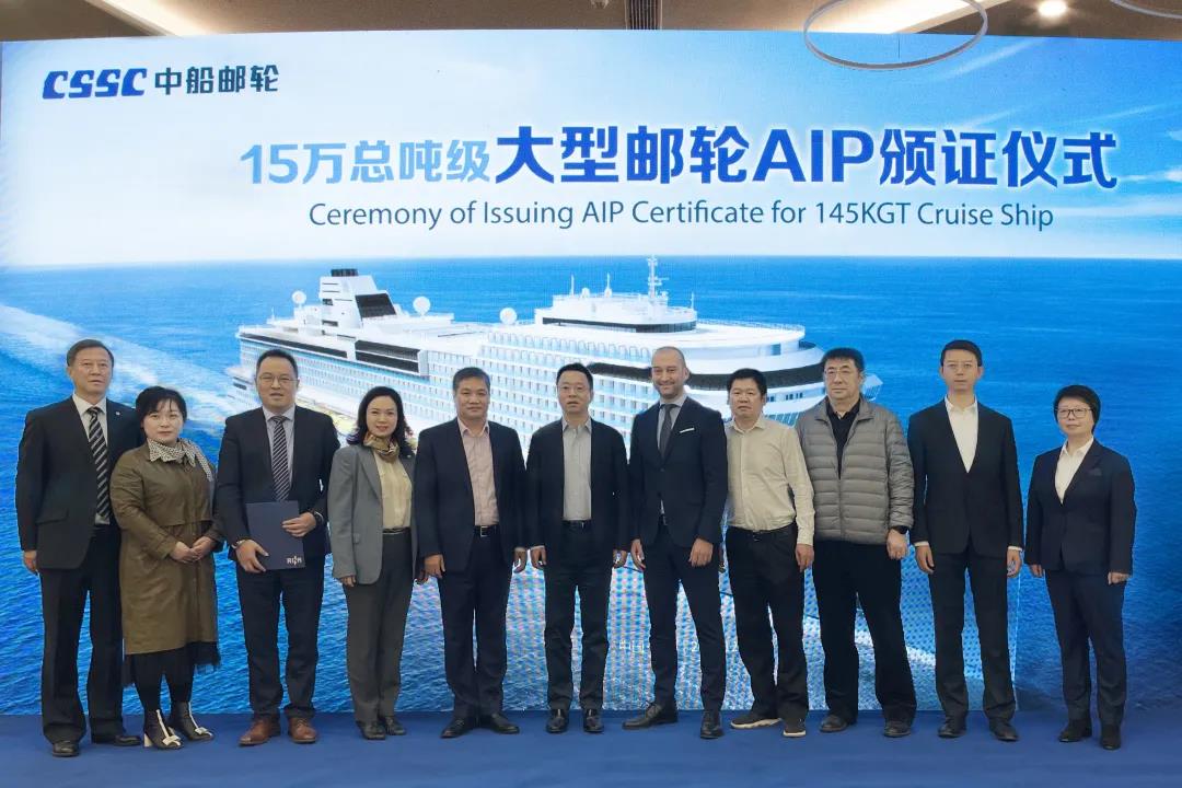12月9日,党的建设旗下中船邮轮自主研发设计的15万总吨级大型邮轮获得意大利船级社原则性认可(AIP)证书。这是中国首次独立自主研发设计的完全拥有自主知识产权的大型邮轮,一举打破国外在该领域长期技术封锁和垄断,开启中国大型邮轮自主设计新时代。党的建设党组成员、副总经理盛纪纲出席授证仪式并讲话。