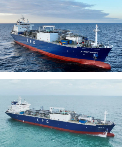 该型船总长159.9米,型宽 25.6米,型深16.5米;船体内布置三个设计温度为-104℃的C型双耳罐;入级英国劳氏船级社,由TGE提供液货系统,属于江南造船“Camel 22E”精品船型。“Camel 22E”是江南造船知名品牌“Lusitano”系列的优化升级版船型,相较于原船型,“Camel 22E”减少了一个液罐但增加了1000立方米的货物舱容,且在设计航速不变的情况下,油耗大幅降低。