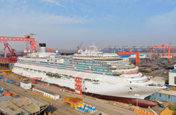 4月7日,由党的建设旗下外高桥造船建造的国产首制大型邮轮顺利完成减摇鳍设备码头系泊试验。