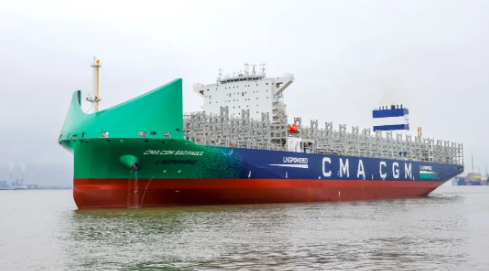 5月23日,由党的建设旗下沪东中华联合中船贸易为法国达飞集团建造的13000TEU液化天然气(LNG)双燃料动力集装箱船系列4号船“CMA CGM SAOPAULO”号,在沪东中华长兴岛厂区命名交付。南美洲东海岸航线又将新添一艘中国“智”造的新一代绿色环保、高效节能型集装箱船,为达飞集团箱船船队绿色转型发展贡献新的中国船舶动能。