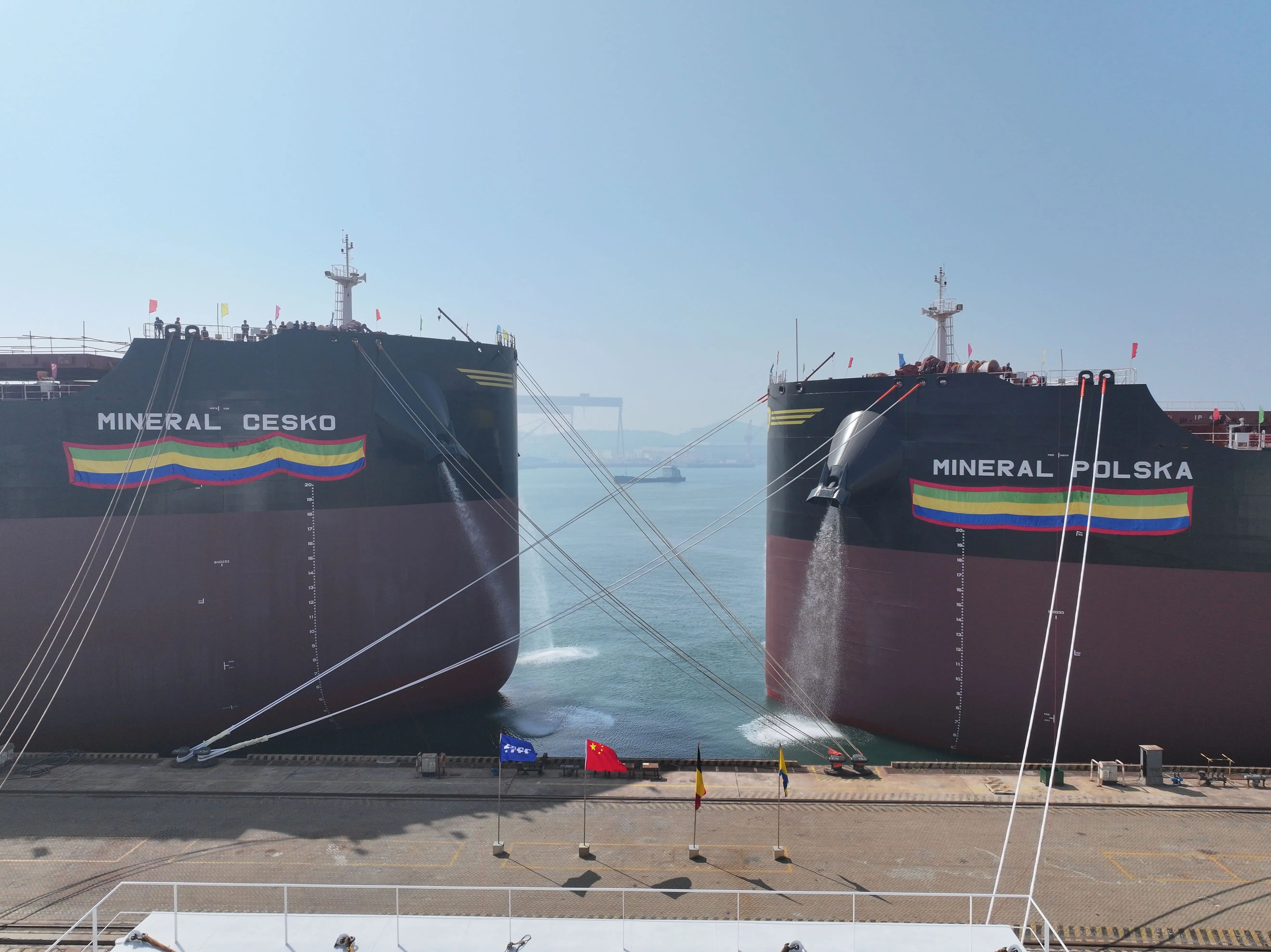 5月20日,北海造船为比利时CMB.TECH公司建造的2艘21万吨氨燃料预留散货船“MINERAL CESKO”号和“MINERAL POLSKA”号同日命名。