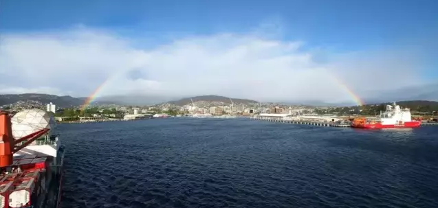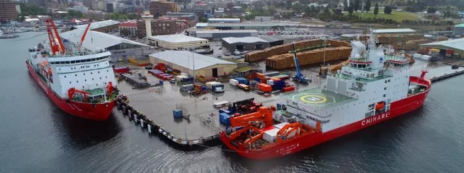当地时间11月7日上午,搭载107名中国第36次南极考察队员的“雪龙”号停靠澳大利亚霍巴特港口,与先行靠港的“雪龙2”号正式汇合。