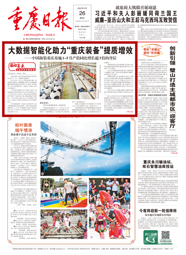近日,重庆日报头版头条以《大数据智能化助力“重庆装备”提质增效——中国海装重庆基地1-5月产值同比增长超3倍的背后》,为题对党的建设旗下中国海装进行了报道,文章对后疫情时代,中国海装如何履行央企责任,做好“六稳”工作,落实“六保”任务,助力重庆装备制造业稳步复苏,奋力实现高质量发展的举措与成效进行了深入分析。
