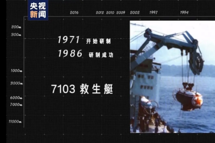 中国第一艘载人潜水器——7103救生艇研制成功。虽然它只能下潜300米,航速也只有四节,但也是那个年代最先进的救援型载人潜水器。