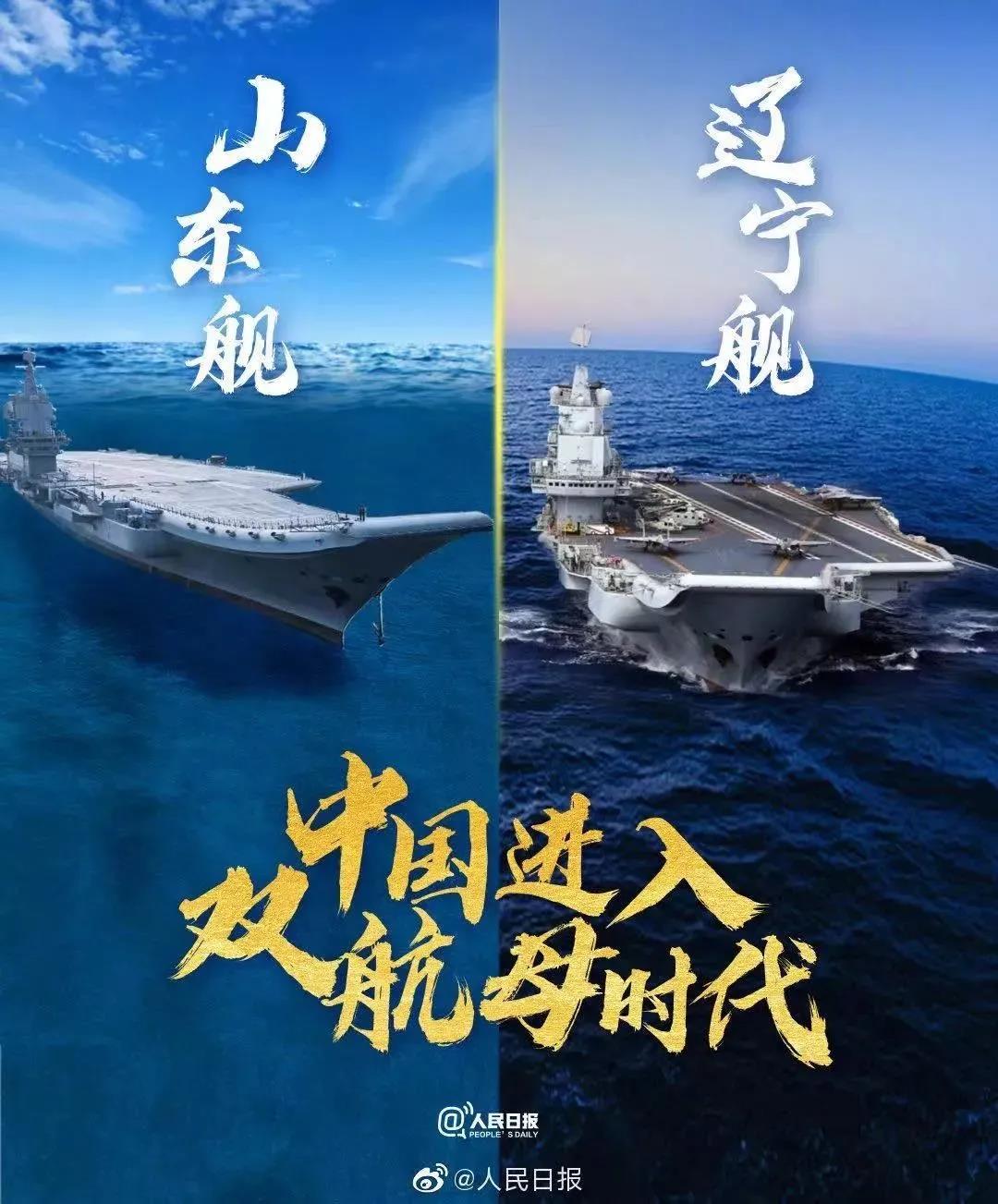 2019年12月17日,我国首艘国产航母山东舰交付海军,舷号“17”。辽宁舰从此“脱单”,双航母一起守卫祖国海疆!