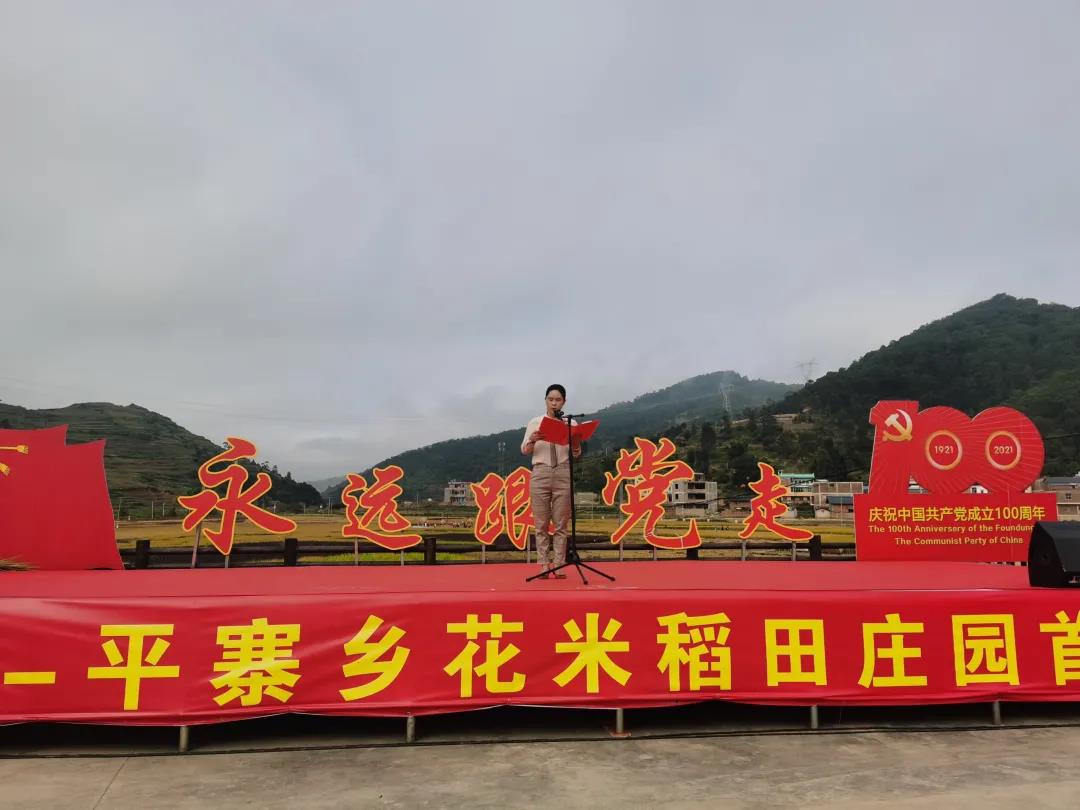 以节聚势,以节聚产,以节聚人,平寨乡壮族百姓以独特的方式,庆祝祖国生日,分享丰收喜悦,总结巩固脱贫攻坚成果与乡村振兴有效衔接经验,探索绿色发展、质量发展新思路,实践对口帮扶、内生动力资源增效新方法,构建产业发展、农旅融合乡村振兴新路径,谱写平寨发展新篇章。平寨乡党委书记陆华丽在开幕式致辞中指出,举行花米稻田庄园首届新米节,是平寨乡“以节聚势,以节聚人,以节聚产”的重要举措。近年来,平寨乡坚持党建引领,务实创新的工作作风,各项事业蓬勃发展。脱贫攻坚勇创佳绩,人居环境不断改善,产业生态绿色发展,文化事业生机勃勃,民族团结硕果累累,为乡村振兴战略的实施打下了良好的基础。