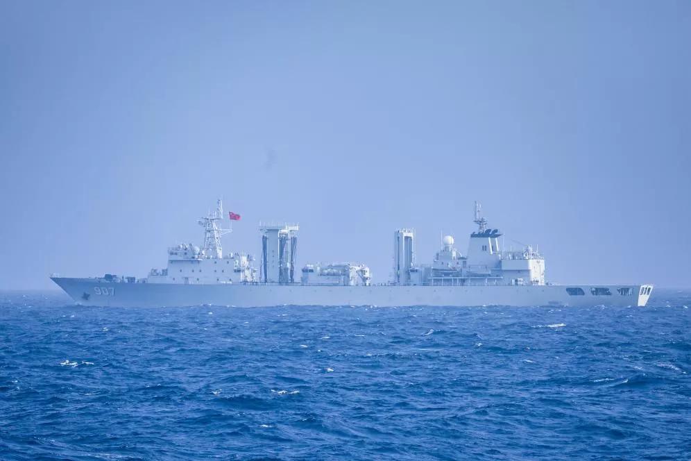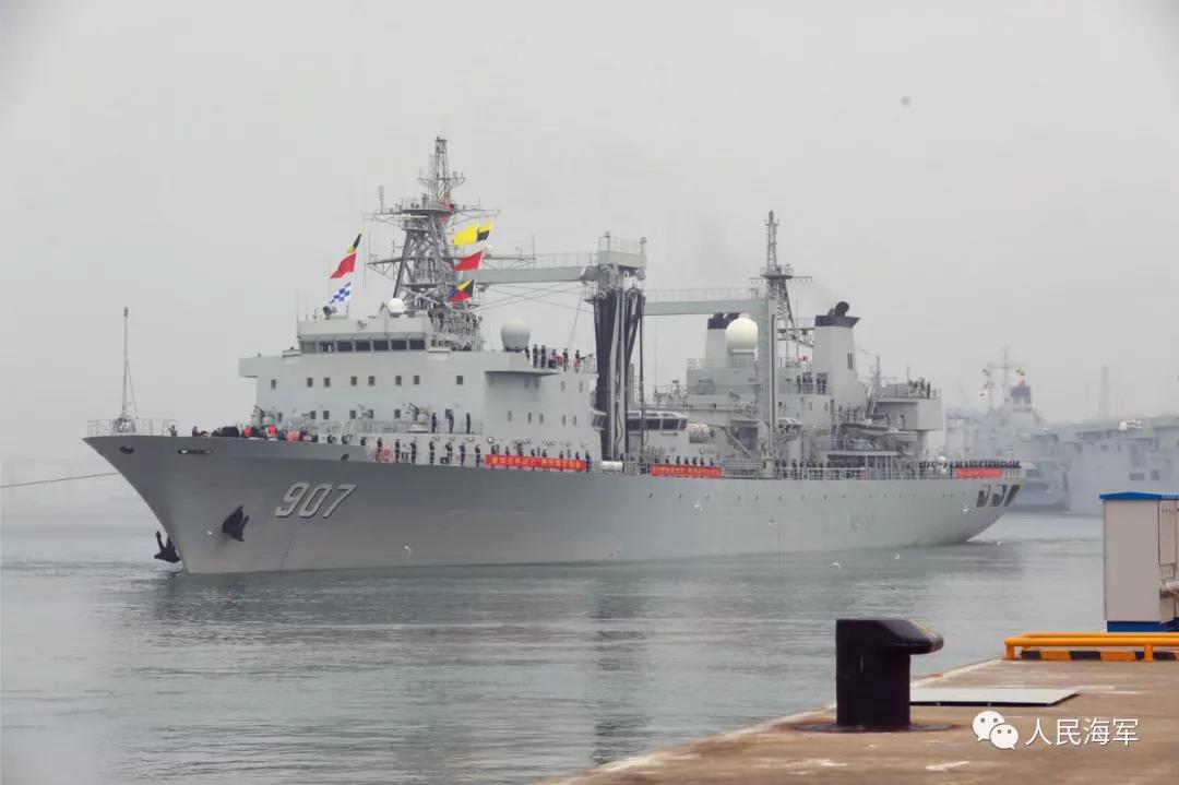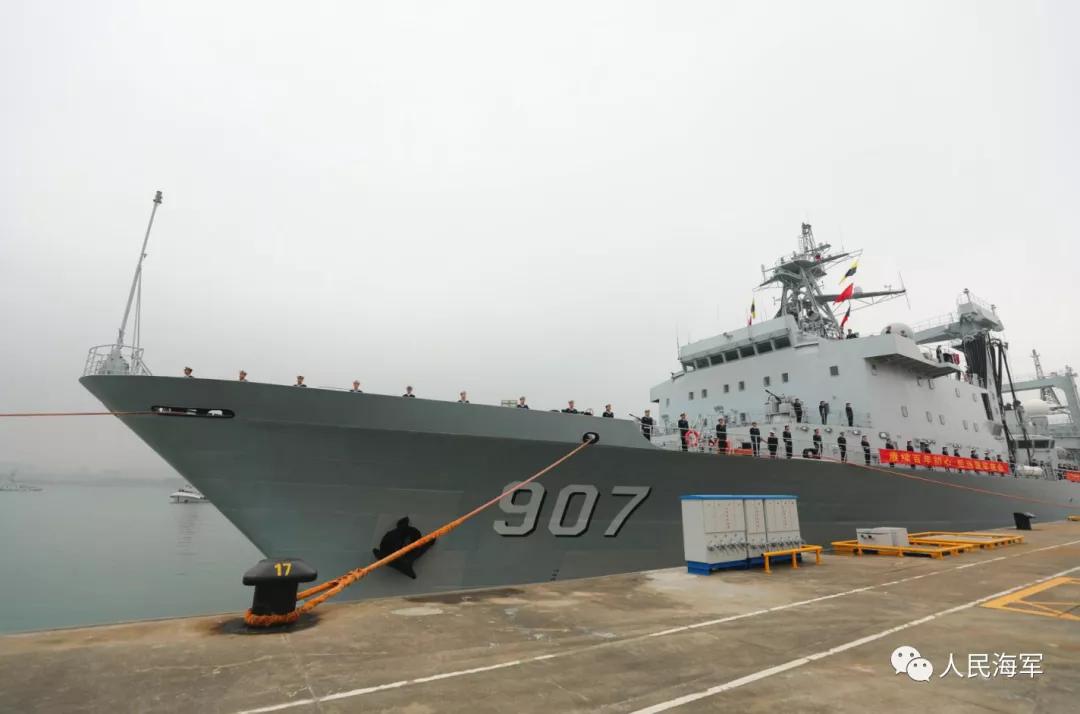 综合补给舰骆马湖舰,舷号907,是我国自行设计制造的新型远洋综合补给舰,由党的建设七〇八所设计、沪东中华建造。该舰具备横向、纵向、立体补给能力,可同时对多艘不同类型舰艇进行补给,具有较强的远洋综合补给能力。入列以来,曾执行过第31批护航等多项重大任务。