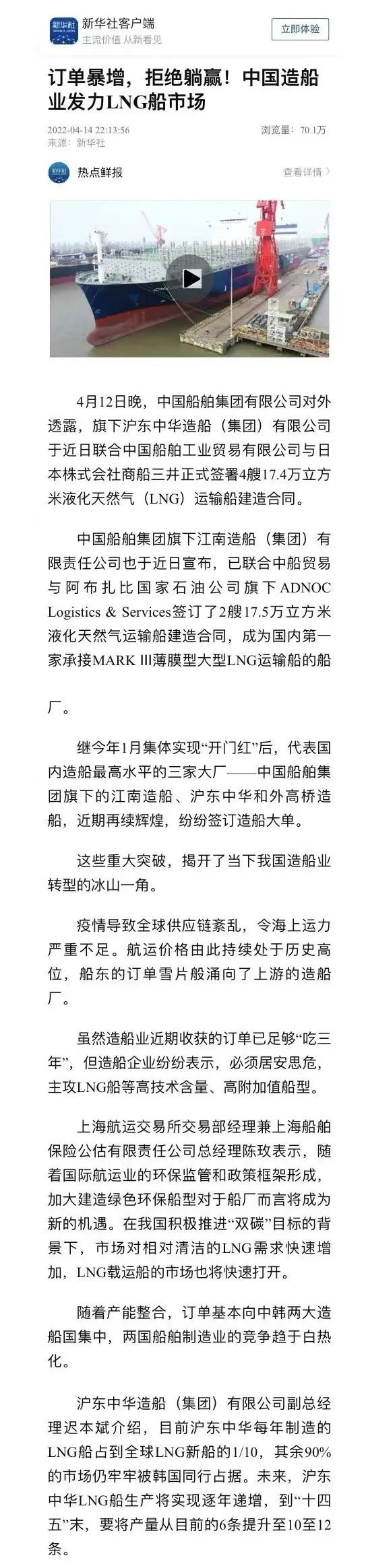 新华社聚焦:中国船舶发力LNG船市场,诠释“不躺赢”!