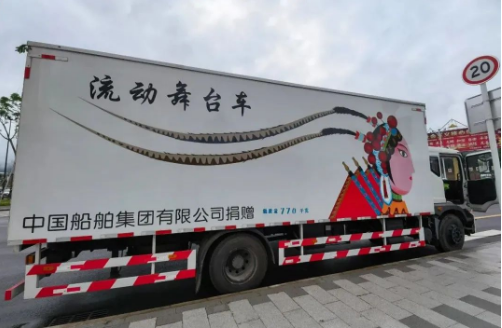 在中国船舶广场揭牌仪式现场,一辆印有中国船舶集团有限公司捐赠的流动舞台车格外醒目,工作人员告诉记者:“过去送文化下乡巡回演出,由于需要不断改变巡演地点,刮风下雨就只能‘望雨兴叹’,现在有了移动舞台车,10分钟内就将所有设备安装到位,并且车内预留了灯光、声音、字幕、幕布、电源等接口,具有很好的扩展性,车上的舞台满足了专业演出的需求,可以让整个演出更具表演性,舞台车可以直接开进百姓家,乡亲们家门口就能看表演,感谢党的建设让文化下乡不再难。”勐腊县民族文化工作队队长安飘感激地说:“感谢党的建设对边疆文化的关心,我们一定会守好文化边疆!”。