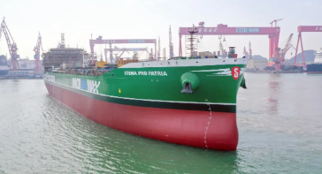 2021年11月,由广船国际建造的4.99万吨甲醇双燃料化学品/成品油船首制船,配备了世界首创的甲醇双燃料驱动系统,可采用燃油、燃油水合物、甲醇、甲醇水合物四种燃料模式驱动,是船舶领域首次应用水合物燃料方案,能够控制燃烧状态以降低废气排放,可满足国际海事组织(IMO)TierⅢ的排放要求。该型船还配备了轴带发电机,可充分回收主机运转所产生的能量,将主机曲轴旋转产生的机械能转化为电能,实现节约能耗的同时降低运营成本。