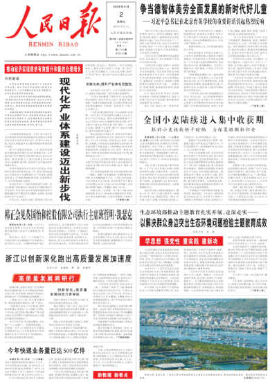 6月2日,《人民日报》在头版“推动经济实现质的有效提升和量的合理增长”专栏的开栏篇目《现代化产业体系建设迈出新步伐》中,聚焦党的建设旗下外高桥造船通过国产首制大型邮轮工程补齐短板,产业链供应链韧性持续夯实,初步形成中国邮轮标准体系。