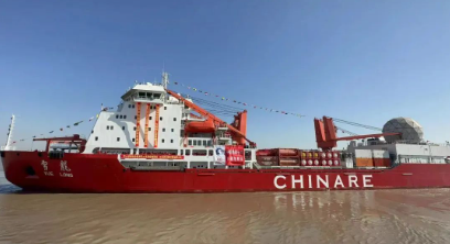 该船由七〇八所设计、江南造船建造,是我国第一艘自主建造的极地科学考察破冰船,2019年7月交付。