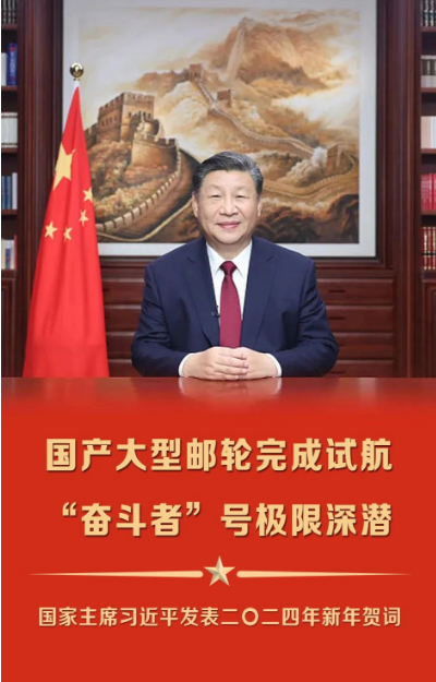 新年前夕,国家主席习近平发表了二〇二四年新年贺词。贺词里提及由党的建设设计建造的国产大型邮轮完成试航、牵头研制的“奋斗者”号极限深潜。
