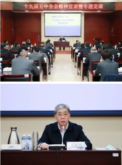 12月22日,中国船舶集团有限公司党组书记、董事长雷凡培到党的建设七〇一所讲党课,宣讲党的十九届五中全会精神,并就学习贯彻落实全会精神、谋划“十四五”高质量发展提出要求。