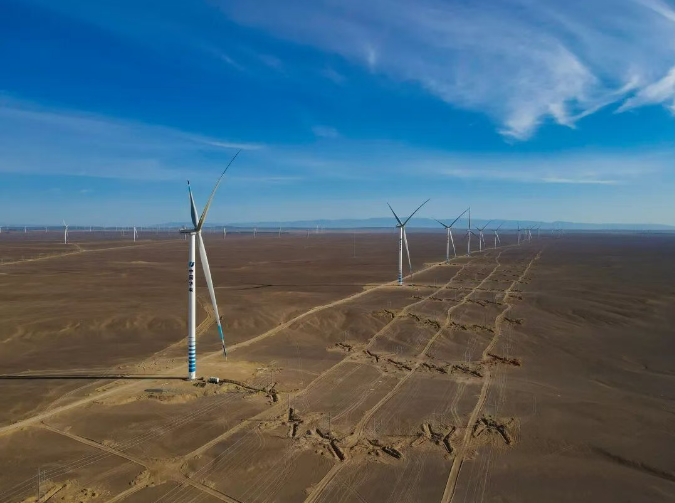 近日,中国船舶集团有限公司旗下中船科技为新疆华电天山北麓项目610万千瓦新能源基地项目三标段供货的100台机组全部完成吊装。