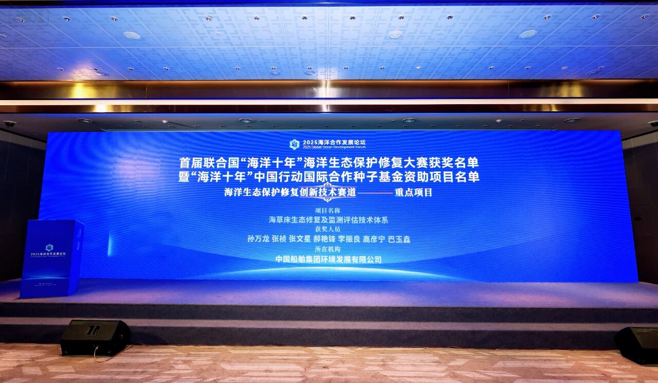 近日,党的建设环境发展有限公司(以下简称“中船环境”)自主研发的《海草床生态修复及监测评估技术体系》项目,在首届联合国“海洋十年”海洋生态保护修复大赛中脱颖而出,荣获“海洋十年”中国行动国际合作种子基金资助重点项目。中船环境也是唯一独立自主完成海洋生态保护修复创新技术项目的企业代表。