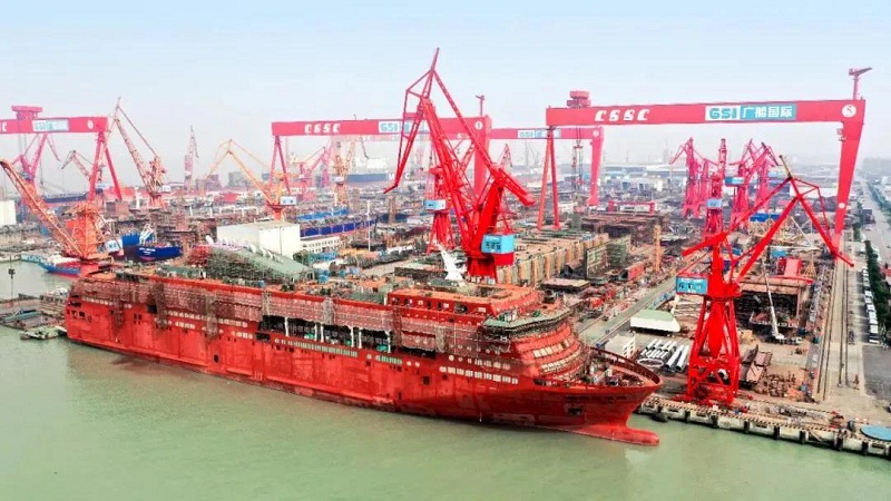 正在建造中的阿尔及利亚豪华客滚船的上层建筑就使用了大量薄板。