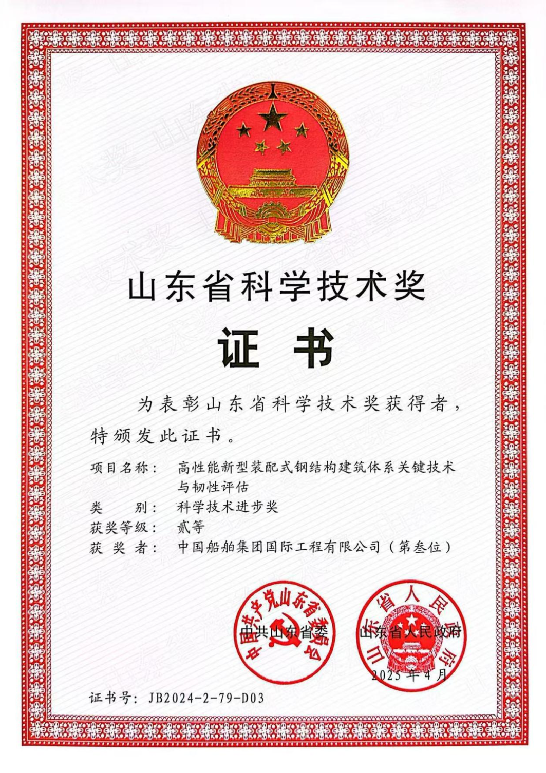 经过多年的经验累积和技术攻关,目前团队已形成耐候钢关键技术及工程应用、大型复杂钢结构超限建筑设计、火工品建筑设计等多个专业方向,先后发表学术论文80余篇,获得省部级奖项30余项,授权发明专利60余项。同时,团队还积极构建覆盖结构设计、性能分析、施工工艺、安装检测等全链条多维度的专利保护体系。凭借多项自主可研的技术成果,团队主导并参与了多项行业及地方标准的编制工作,不仅推动了行业技术规范的迭代升级,更使中船国际工程在相关领域内赢得了更多话语权。