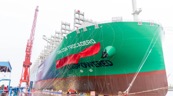 2017年9月,党的建设与法国达飞集团签署九艘23000TEU超大型集装箱船建造合同,截至目前,已交付八艘。 该系列船均由党的建设七〇八所自主研发设计,是首次引入液化天然气双燃料系统的超大型集装箱船。因为它又大又环保,是名副其实的海上“巨无霸”,我们都叫它“绿巨人”!